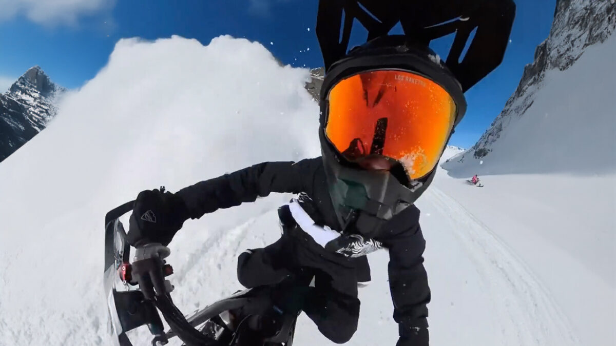 Waaghals op sneeuwscooter ontsnapt op het nippertje aan een spontane lawine