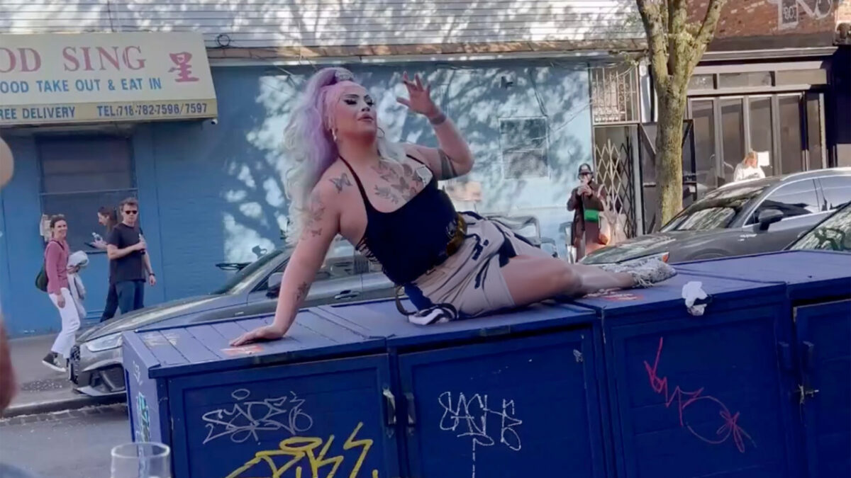 Een afvalcontainer blijkt niet het allerbeste podium voor een Urban Drag Race