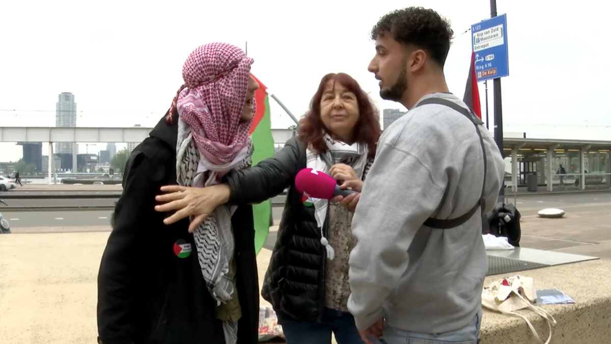 Verslaggever Aryan Parsa de huid volgescholden door pro-Palestijnse demonstrant