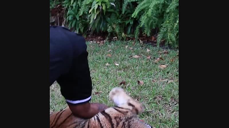 Tarzan rollebolt gezellig met zijn gigantische huis-, tuin- en keukentijger Dieren