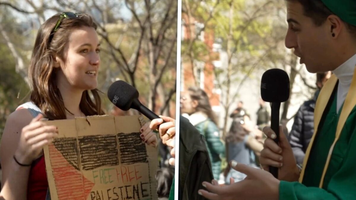 Interviewer vraagt pro-Palestijnse studenten naar hun kennis over het conflict in Israël