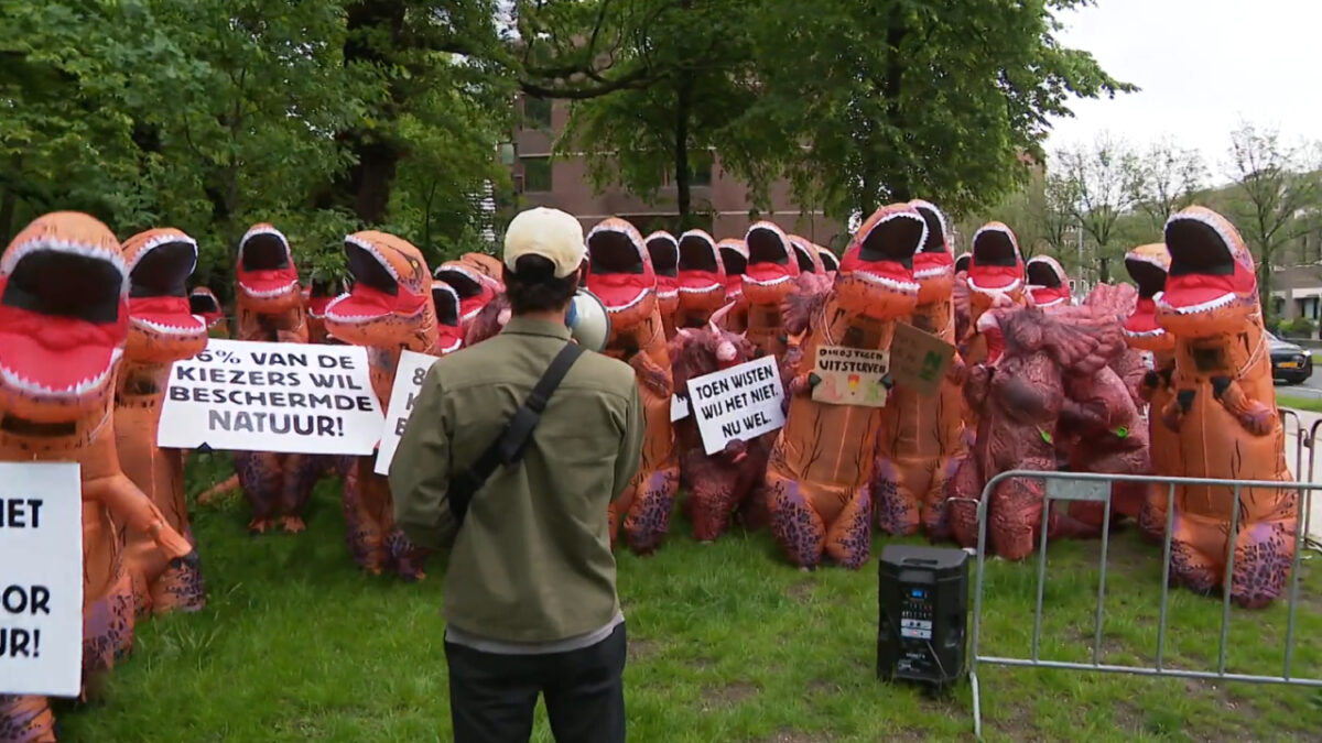 Meer dan 100 dinosaurussen vallen "dood neer" tijdens protest voor Tweede Kamer
