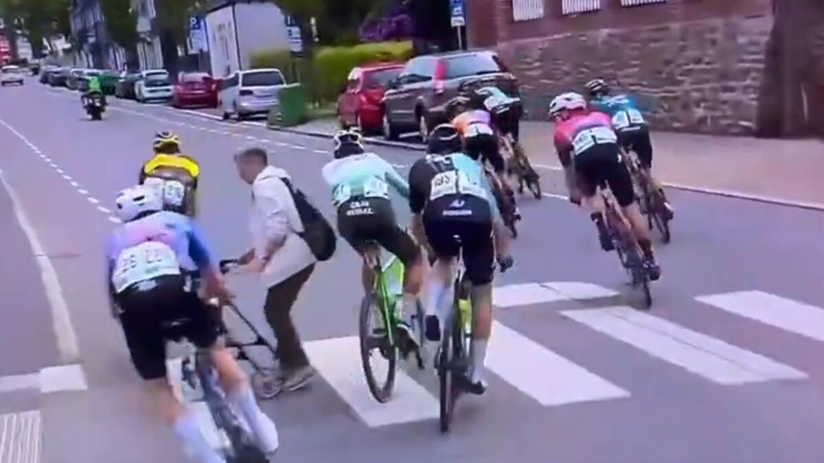 Oma met rollator veroorzaakt bijna enorme crash tijdens De Ronde van Keulen
