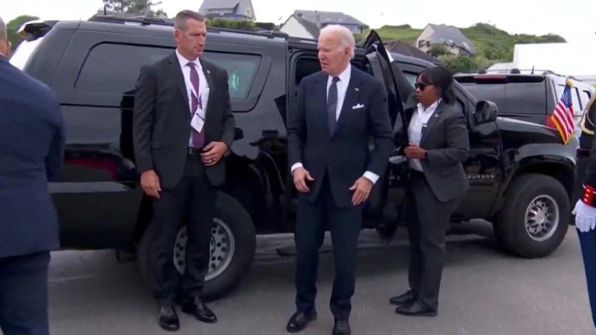Tijdens een herdenking van de landing op Normandië die 80 jaar geleden plaatsvond (inderdaad, Biden is ouder dan dat) staarde de beste man in de verte, leek hij te wandelen als een zombie, deed hij een dutje (althans, zo leek het) en volgens sommigen stond hij zichzelf zelfs te bevuilen alvorens weggeleid te worden. Dat ter grote verbazing van de Franse president Macron, die daarna wél de moeite nam de aanwezige veteranen te bedanken en te groeten. Hoe lang gaat dit nog goed?