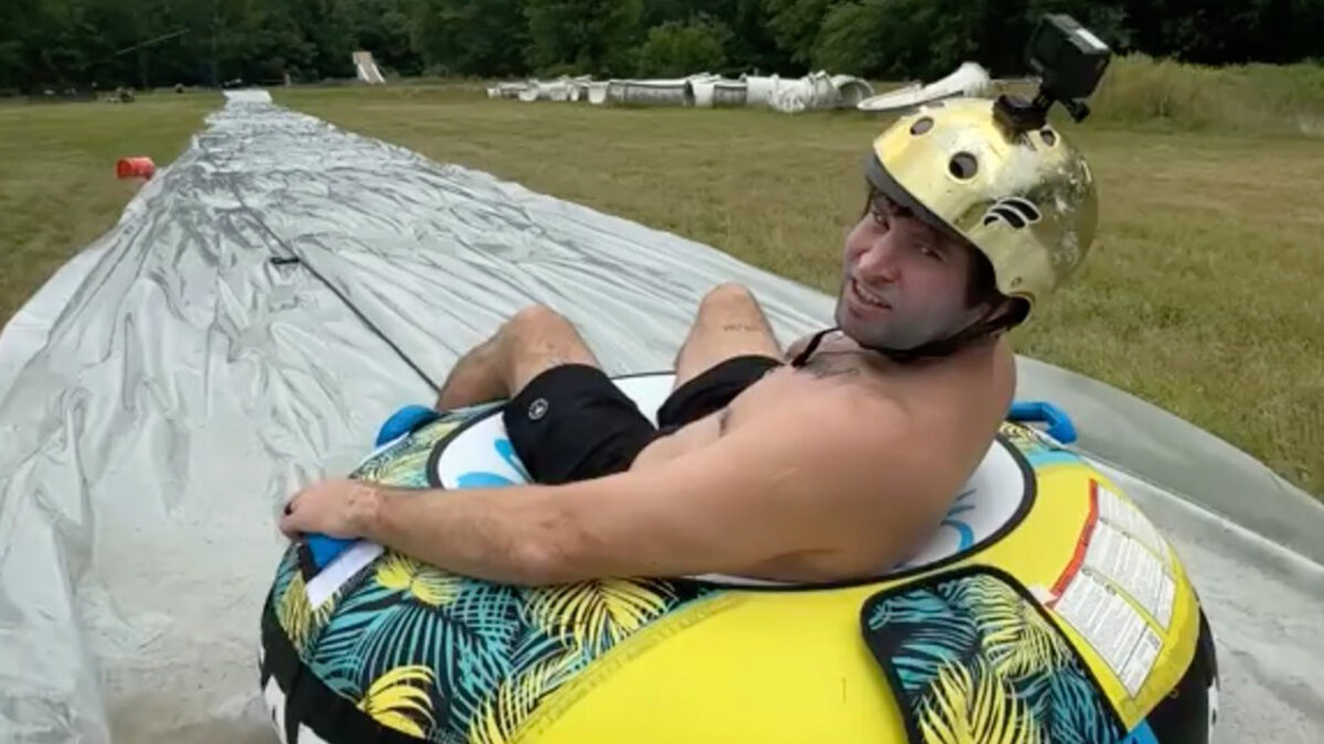 De Funk Bros doen het voorkomen alsof "Poopies" (ook lid van Jackass) met een bloedgang van deze zelfgebouwde slip 'n slide racet, alles voor de clicks en likes natuurlijk, maar dan had 'ie waarschijnlijk de rest van zijn leven door een rietje moeten eten.
