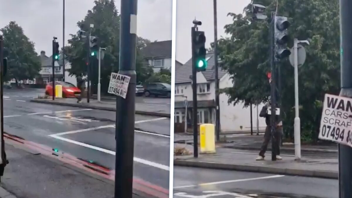 Bizar: Man zaagt verkeerscamera om in Londen op klaarlichte dag