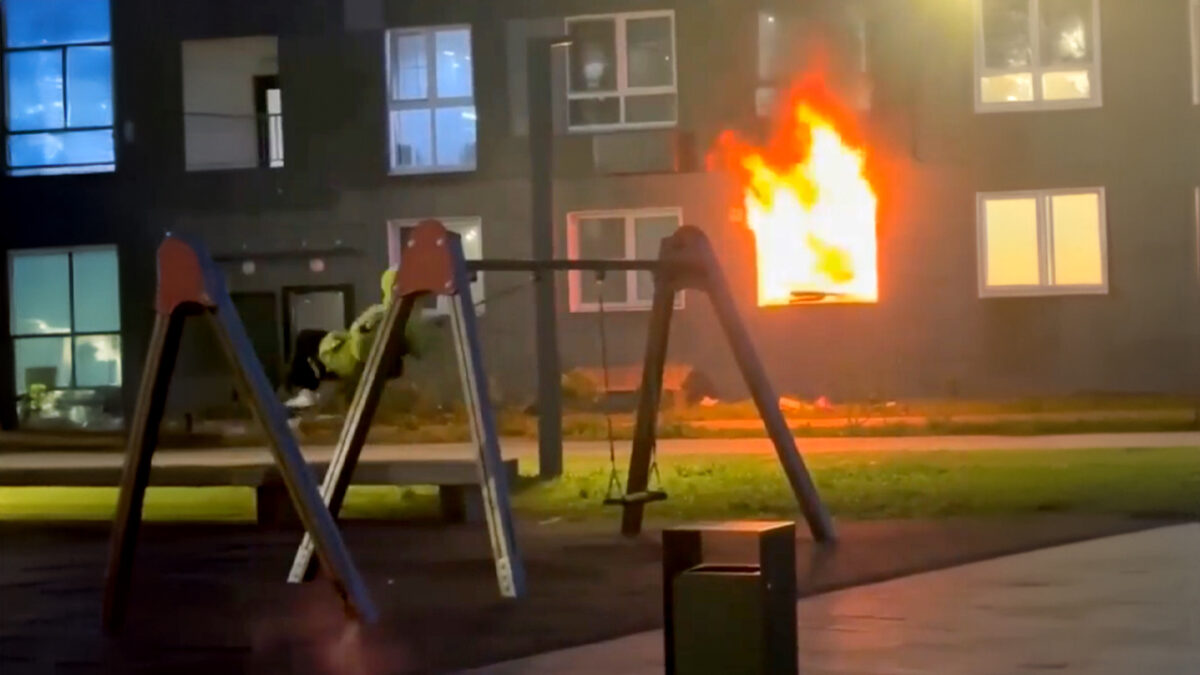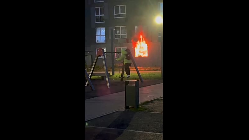 Kan gewoon: Rustig in de speeltuin schommelen terwijl een huis in lichterlaaie staat