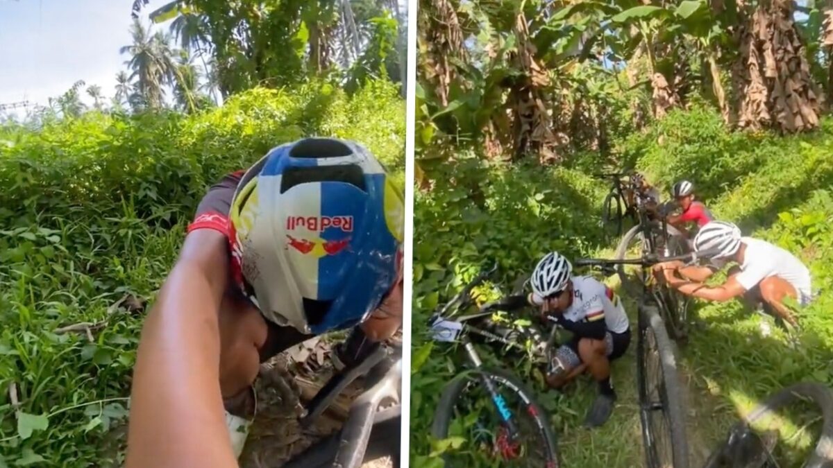 Dat je op dit moment beter even niet naar de Filipijnen kunt gaan om met je maten te wielrennen blijkt wel uit deze beelden. Naar verluidt heeft het leger van het land het vuur geopend op een aantal NPA-rebellen en daar waren deze sportievelingen getuige van.