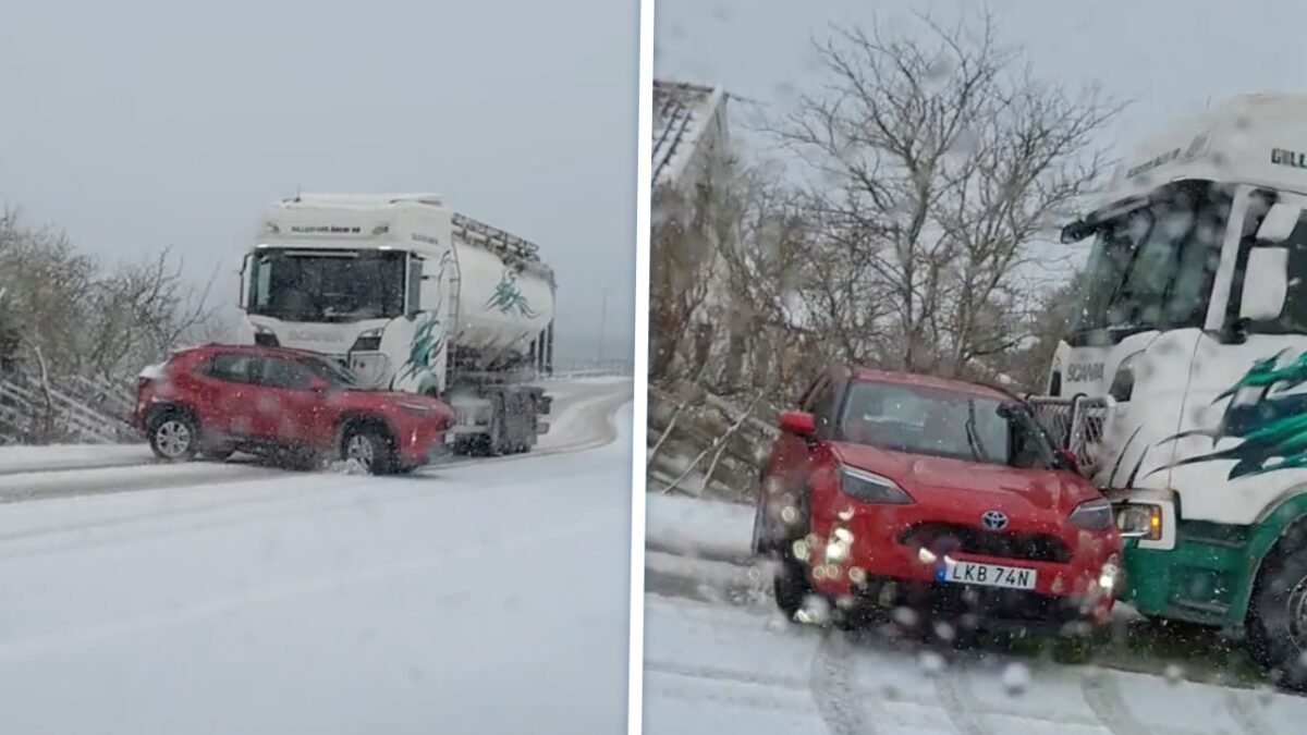 Pötverdömme: Auto in in Zweden lift gratis mee met vrachtwagen Fails