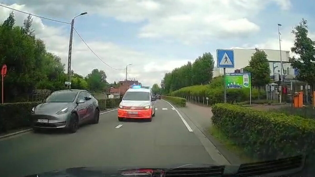 Als er een ambulance of politieauto op je af komt, van achter of van voren, is het zaak om rustig te blijven, niet te schrikken en vol op de rem te gaan, duidelijk te maken dat je deze hebt gezien en WAAR HET KAN uitwijkt om deze voorbij te laten. De bestuurders van die auto's zijn getraind om met zwaailichten en sirene snel én veilig te rijden, al ging het hier in België bijna mis. Wie zat er fout; de politieauto die even had moeten wachten met inhalen, of de Tesla die niet snel genoeg uitwijkt?