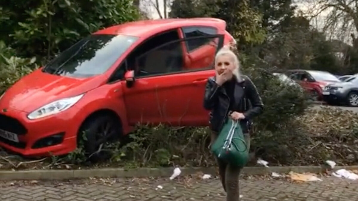Vriendin ramt Ford op de parkeerplaats en belandt met eigen auto in de bosjes