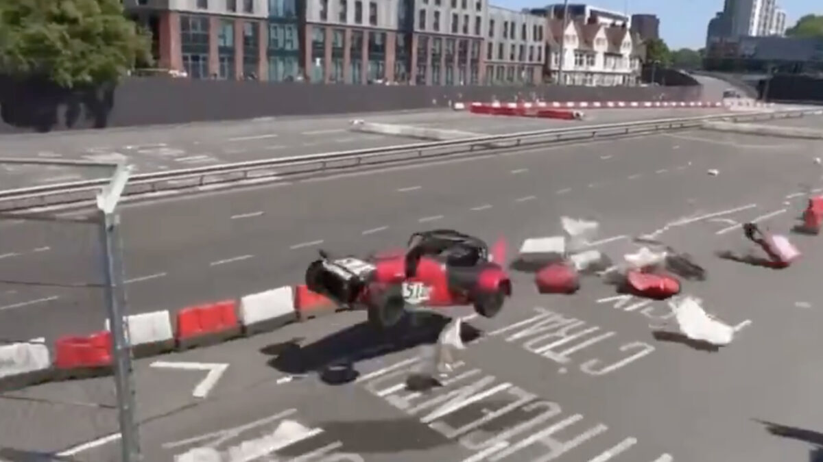 Britse Marshal ontsnapt aan de dood bij een lompe crash in de BARC MotoFest-race