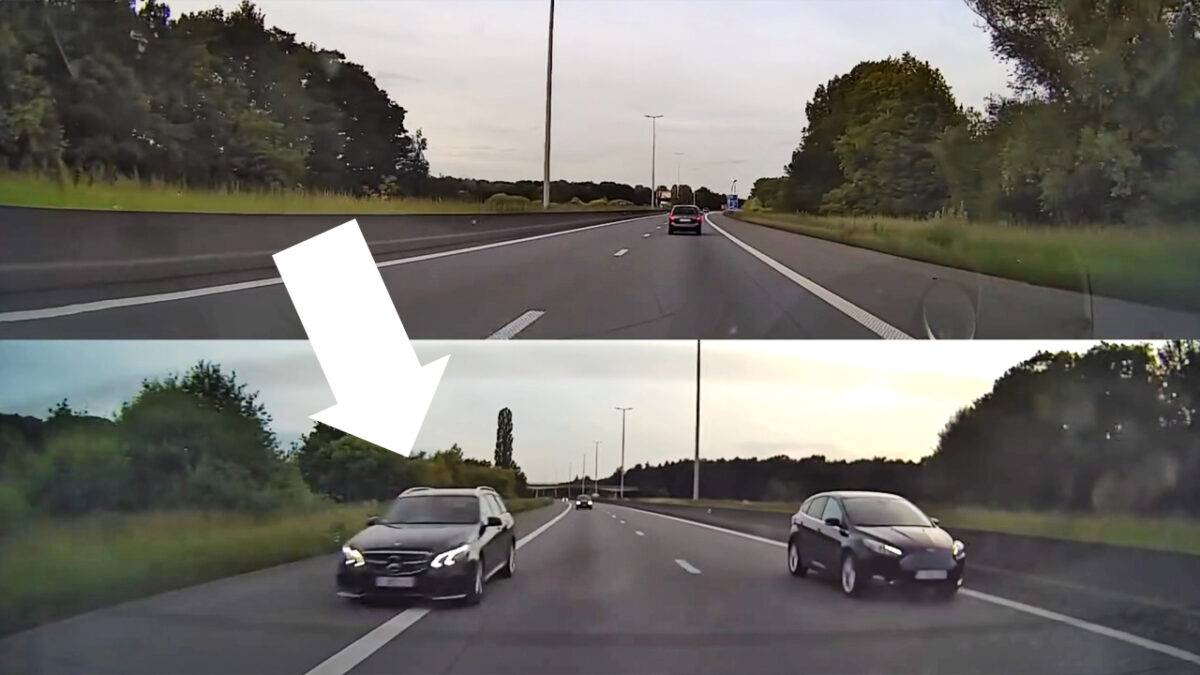 Tokkie in een Mercedes pakt de vluchtstrook om 3 auto's in één keer in te halen