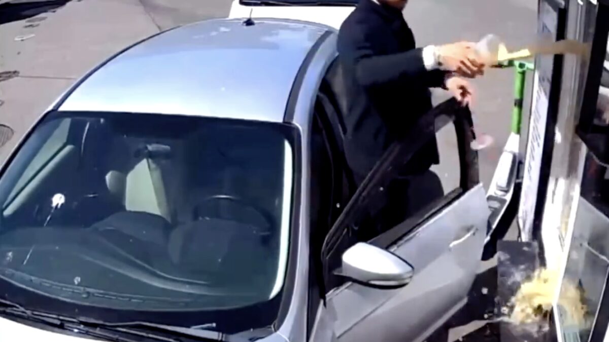 Boze bikini-barista neemt wraak op klant die met koffie gooit door voorruit te slopen