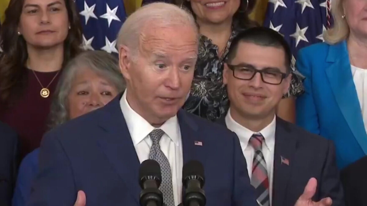 Joe Biden lijkt weer eens volledig vast te lopen tijdens speech in het Witte Huis