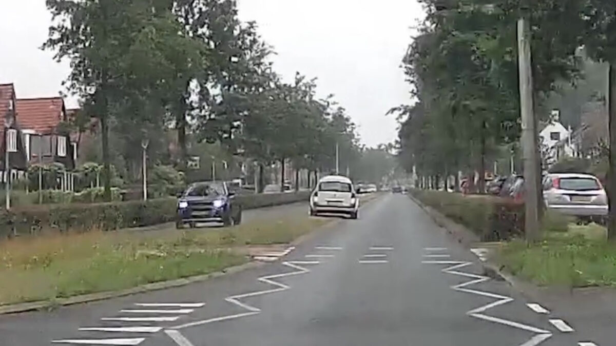 Je zou zeggen dat iedereen wel snapt dat een middenberm niet is bedoeld om op te rijden, maar deze Friese bestuurder heeft daar weinig boodschap aan en besluit dat gedeelte als derde rijstrook te gebruiken. Waarom blijft onduidelijk.