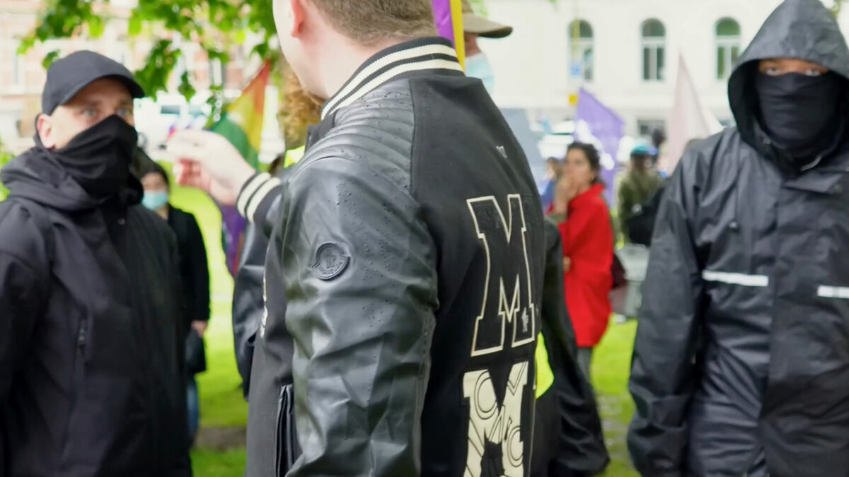 Bender hard aan de kant gebeukt door Antifa bij een demonstratie van feministen