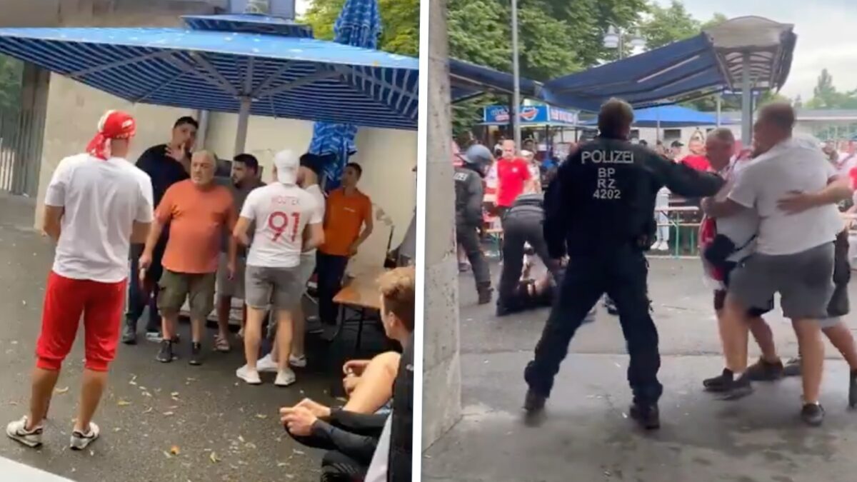 Poolse voetbalfan gooit bier naar Duitse politie en die grijpt hard in