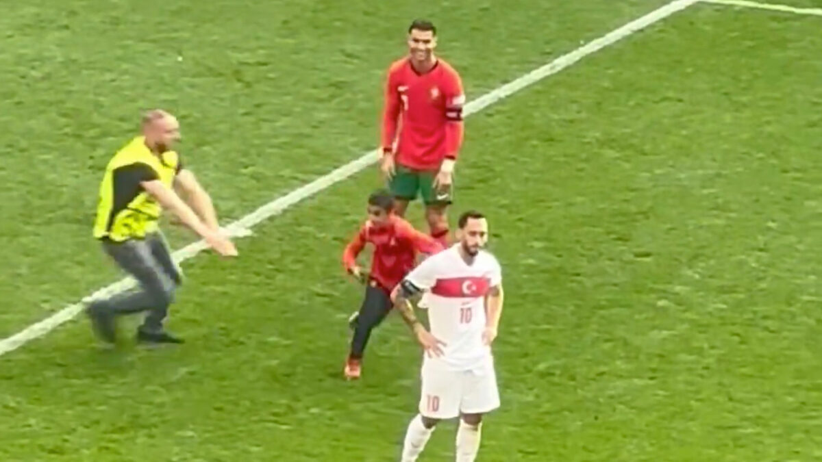 Gisteravond speelde Portugal z'n tweede wedstrijd op het EK tegen Turkije die ze dankzij een bizarre eigen goal en een niet zelfzuchtige Ronaldo met 0-3 wisten te winnen. Wat ook opviel was het aantal toeschouwers dat op vrij eenvoudige wijze het veld op rende om een foto met Ronaldo te maken. De regie hield het uiteraard angstvallig uit beeld, maar er zijn uiteraard altijd beelden vanuit het stadion.