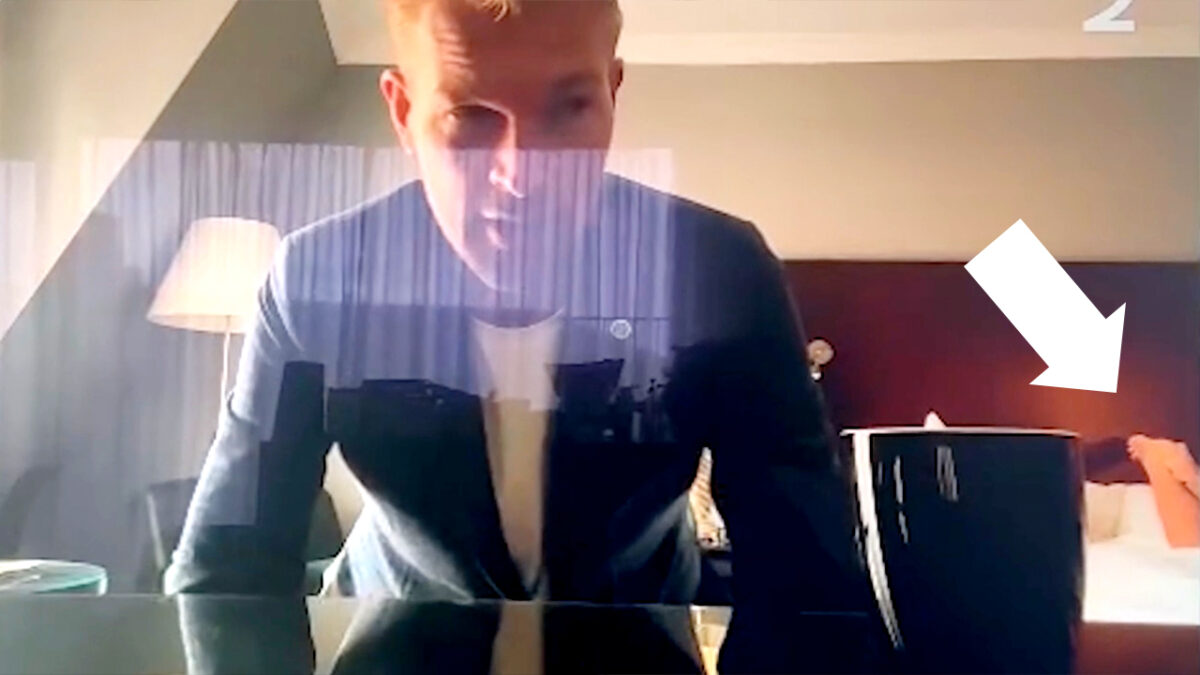 Gisterochtend gaf Ruben van Gucht vanuit een hotelkamer in Keulen live uitleg over de EK-wedstrijd tussen België en Roemenië die 's avonds gespeeld zou worden. Niet alleen kijkers hadden in de gaten dat er op de achtergrond een stel mooie vrouwenbenen te zien waren, ook de verslaggever zelf had dit op een gegeven moment in de gaten en zette z'n kopje koffie er tactisch voor.