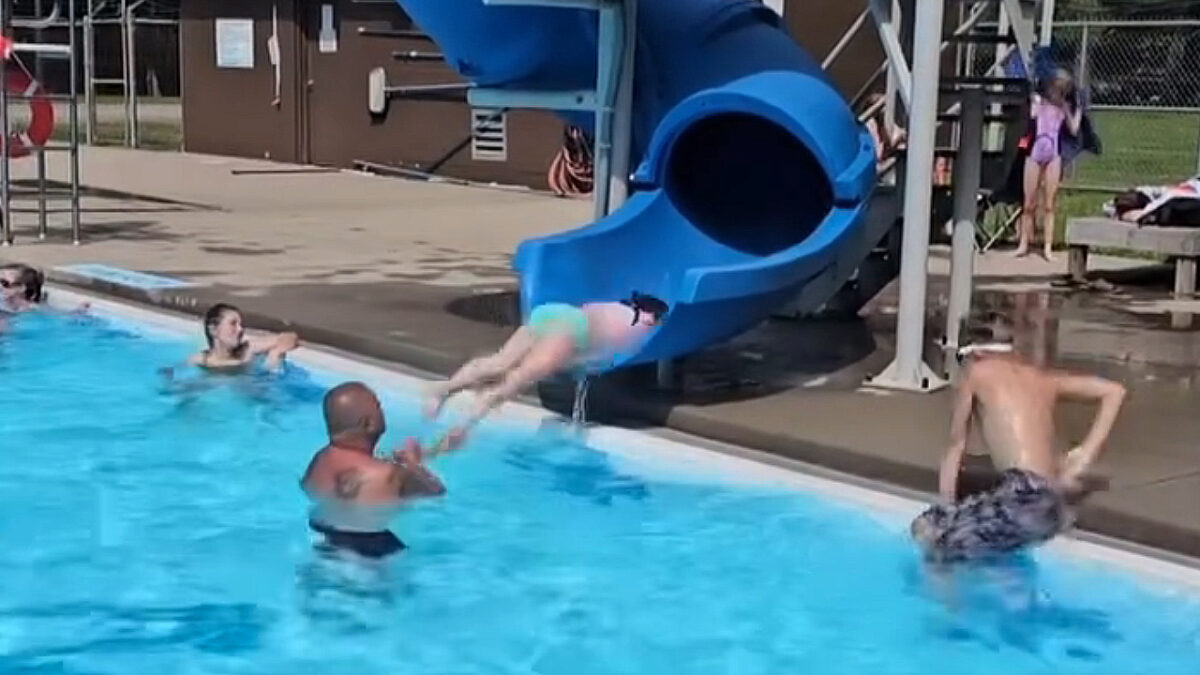Schat, vang jij je dochter even op als ze van de glijbaan komt? Fails
