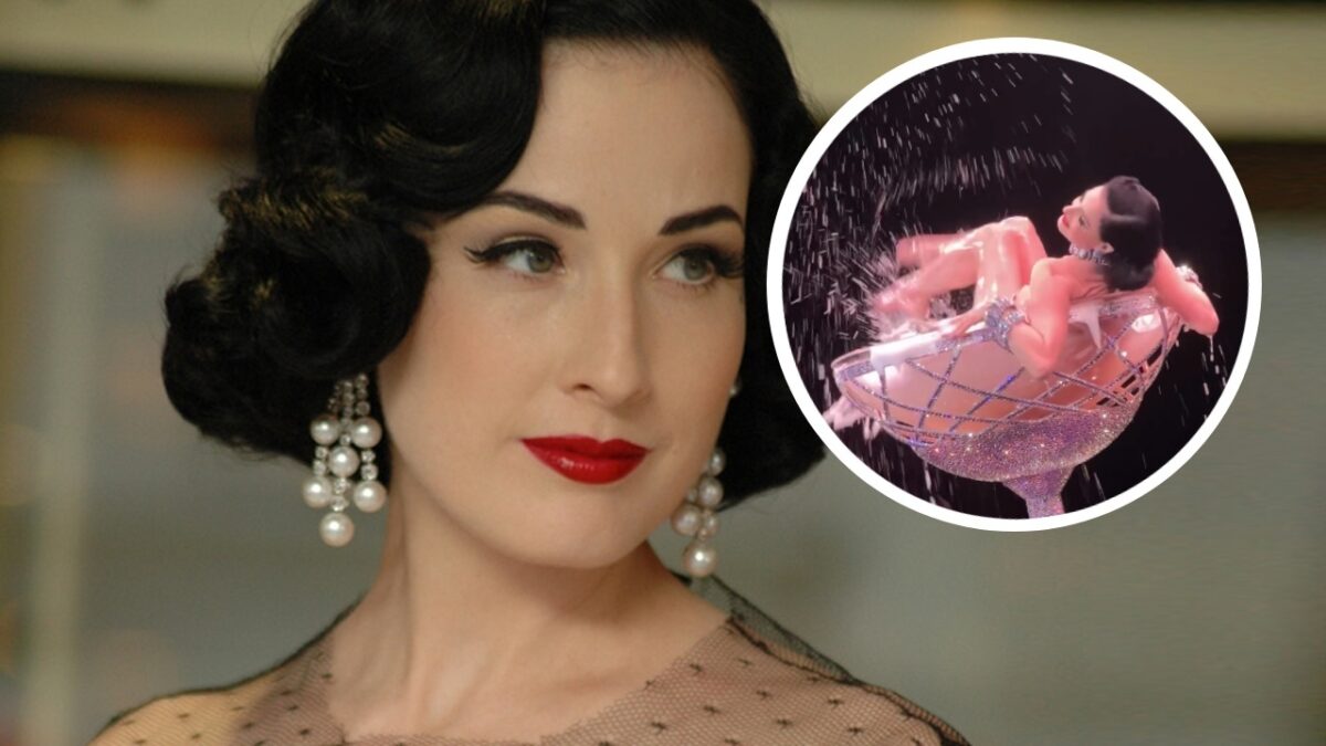 De 51-jarige Dita Von Teese gaf een pittig showtje weg tijdens de Fashion Week in Parijs