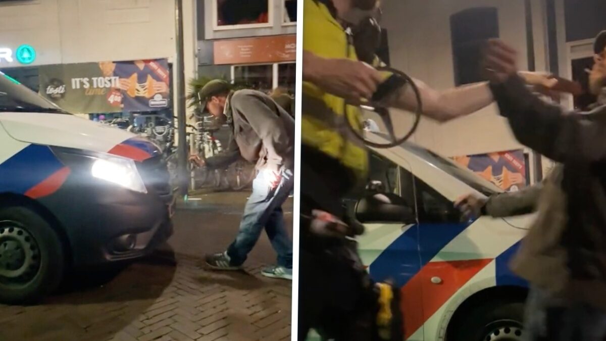 Altijd een slecht idee: het Mercedeslogo van een politiebus trekken