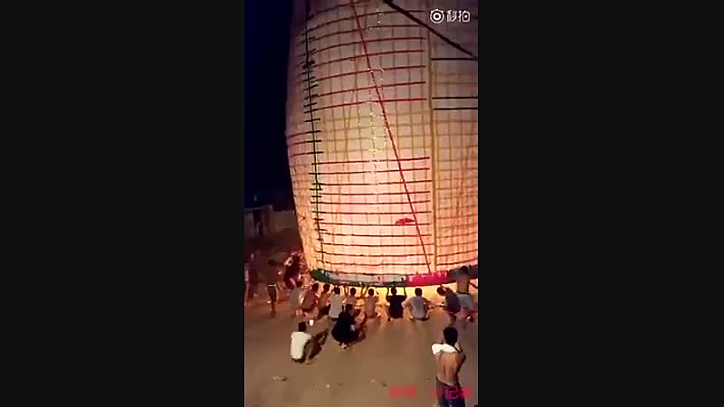Enorme lantaarn vol vuurwerk komt zo weer brandend naar beneden