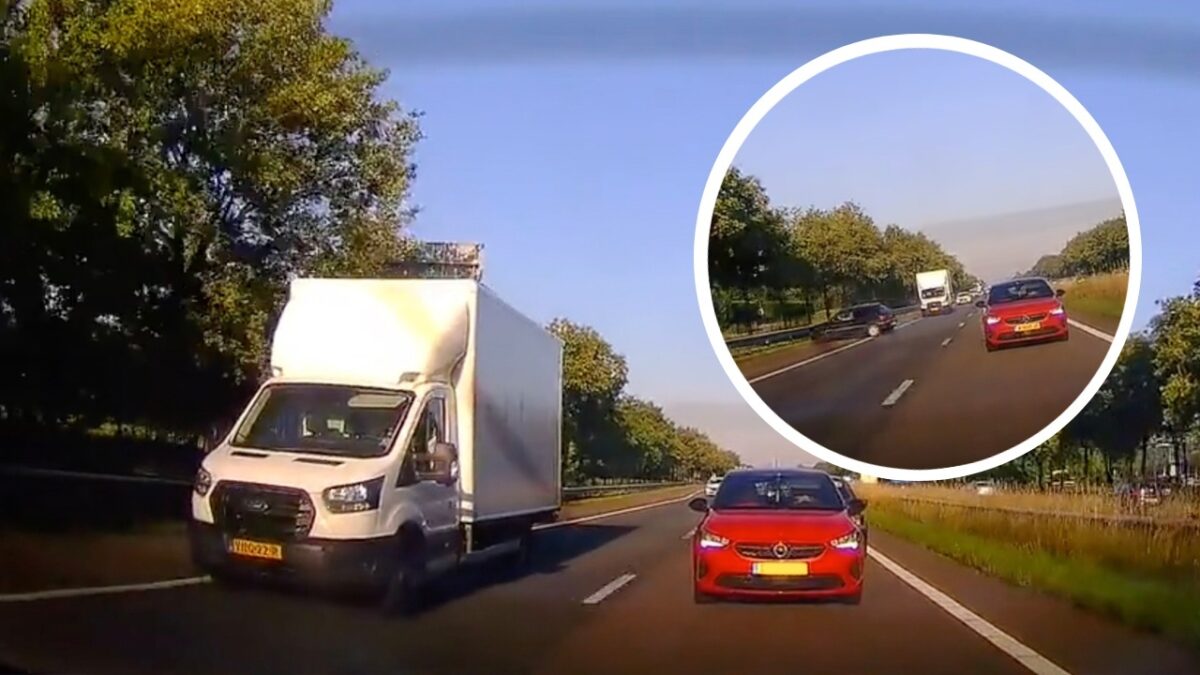 We zien met enige regelmaat dat er zogenaamde brake checks worden uitgedeeld, maar dat loopt vaak met een sisser af. Deze keer leidde het wel tot blikschade nadat een achterligger uit reflex uitweek en z'n auto niet meer onder controle had.