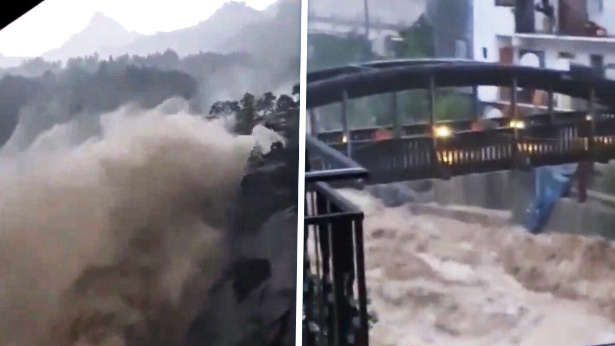 Niet alleen in Frankrijk en Zwitseland hebben ze op bepaalde plekken met flink noodweer te maken, ook in het noorden van Italië ontstond onrust omdat een waterval iets té spectaculair werd: het water stortte er ruim 30 meter naar beneden en een bruine modderstroom raasde door het dorp.