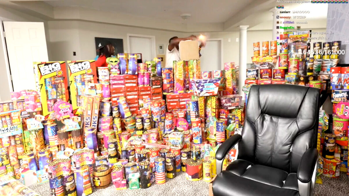 Streaming room van Youtuber Kai Cenat gesloopt nadat vriend z'n vuurwerk aansteekt