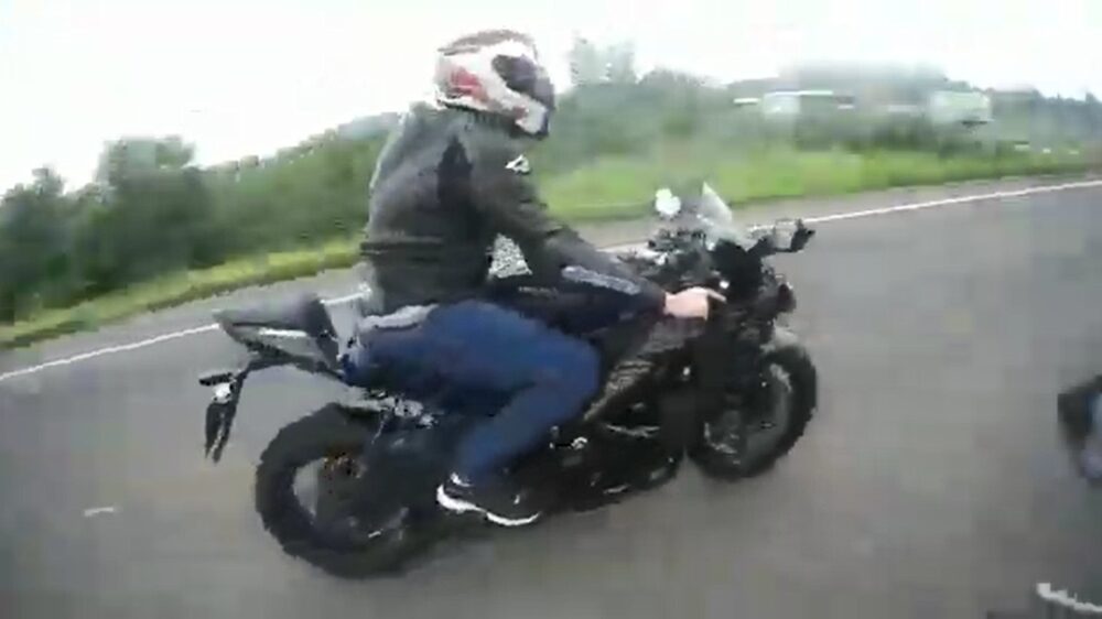 Stoere bikerboy doet poging tot wheelie maar gaat vol op zijn plaat