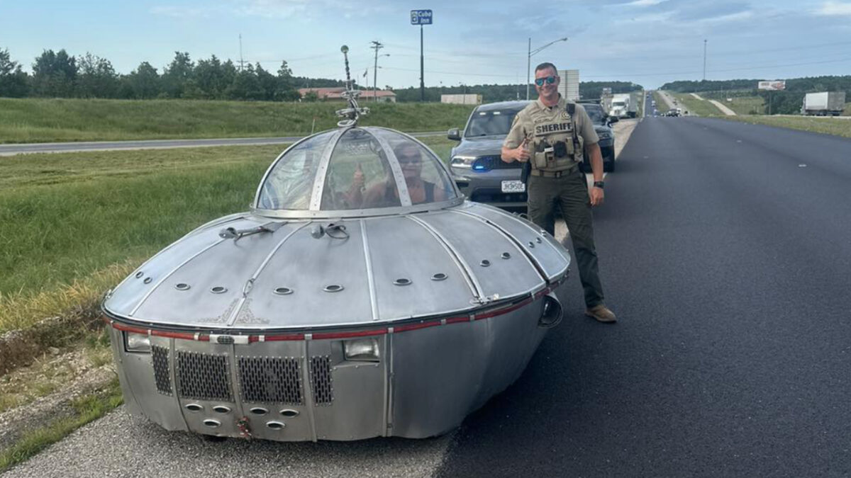 Rijdende ufo wordt op weg naar Roswell door de politie aangehouden