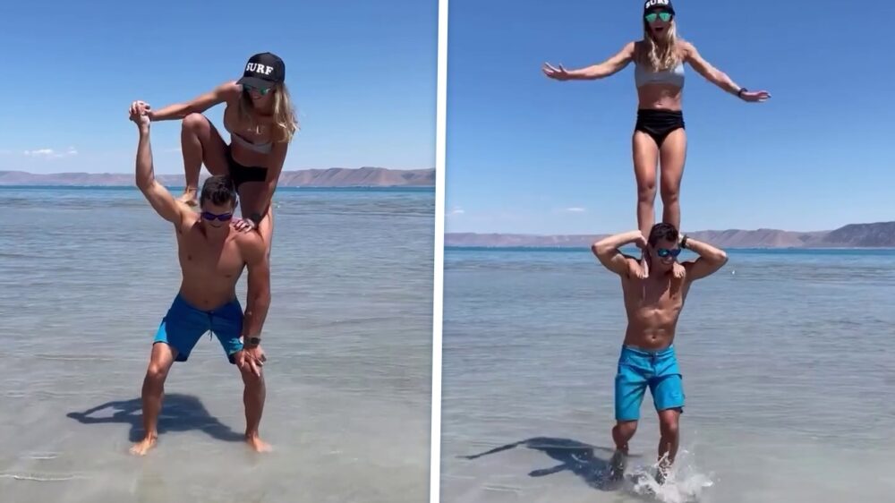 Acrobatisch stelletje kan de volgende keer beter iets dieper water opzoeken