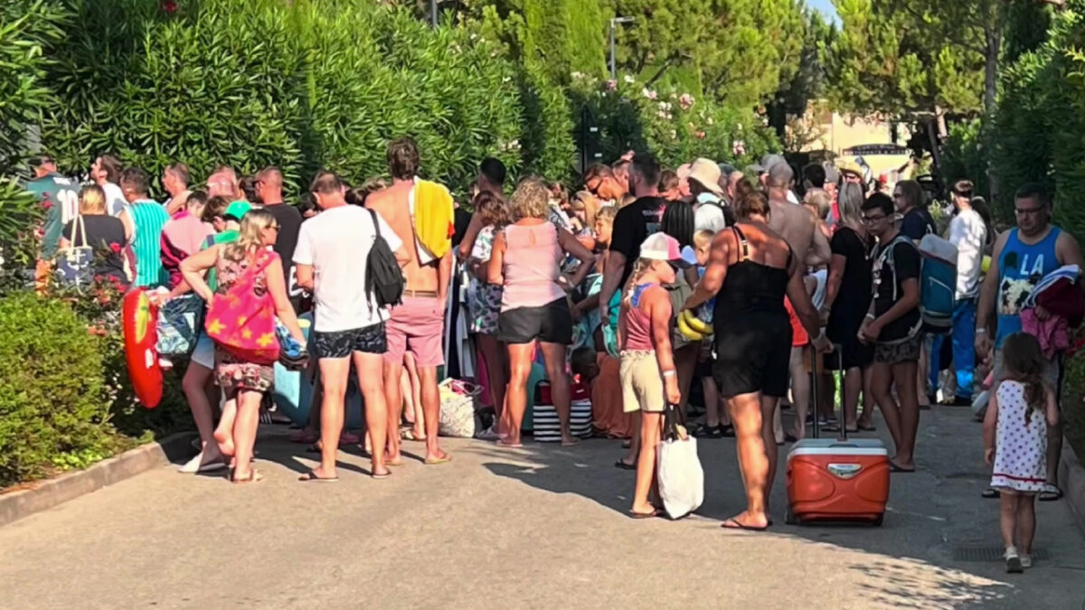 Iedereen in de startblokken voor de handdoekenrace op een camping aan het Gardameer
