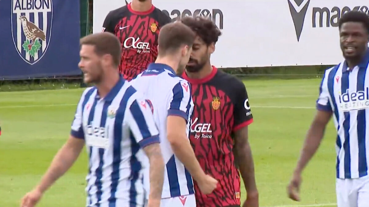 De oefenwedstrijd tussen West Bromwich Albion en Real Mallorca escaleerde afgelopen zaterdag behoorlijk uit de klauwen na een overtreding van Samú Costa (Mallorca) op Jayson Molumby (West Bromwich). Nadat de haantjes elkaar eerst met hun hoofden probeerden te intimideren, knapte er iets bij Molumby die vrij snel een stoot uitdeelde waarna ze op de grond vielen en er een worstelpartij ontstond.
