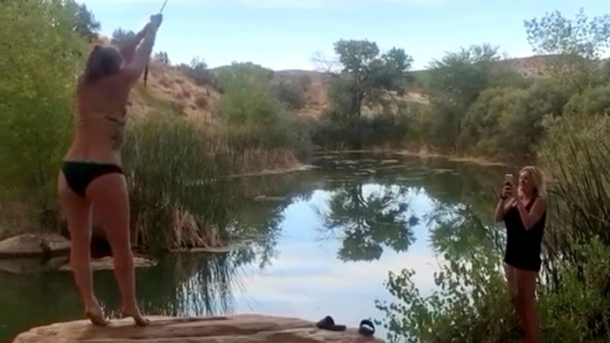 Cameravrouw wordt op een nat pak getrakteerd dankzij haar incompetente vriendin