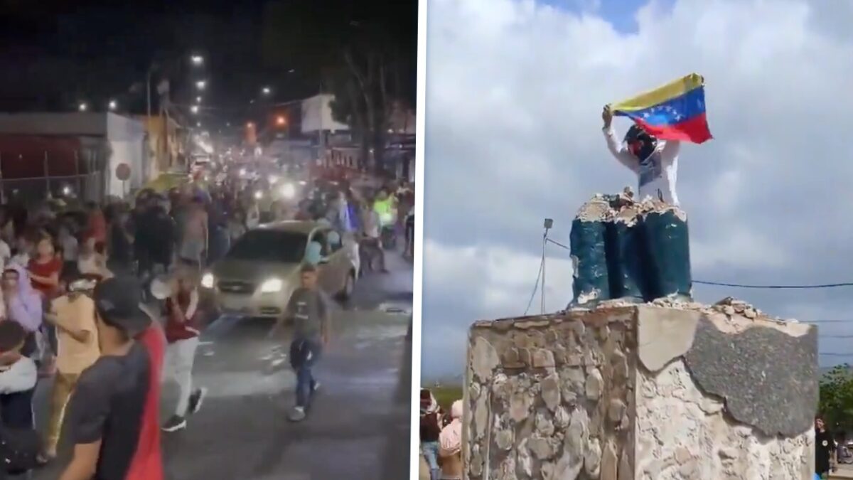 Het standbeeld van Hugo Chávez, de voorganger van Nicolas Maduro, werd neergehaald. Het volk komt in opstand.