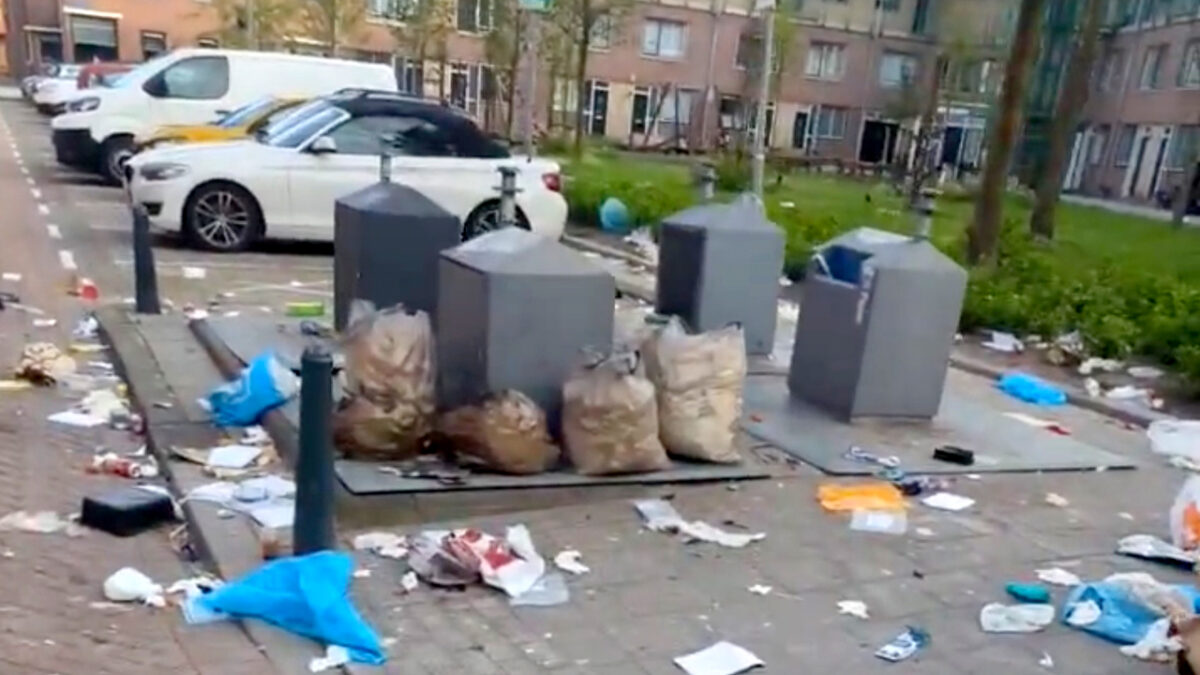 In Amsterdam is het overigens niet veel beter, maar daar zijn het - net als in Den Haag - met name die irritante meeuwen die er een zooitje van maken door zakken kapot te scheuren.