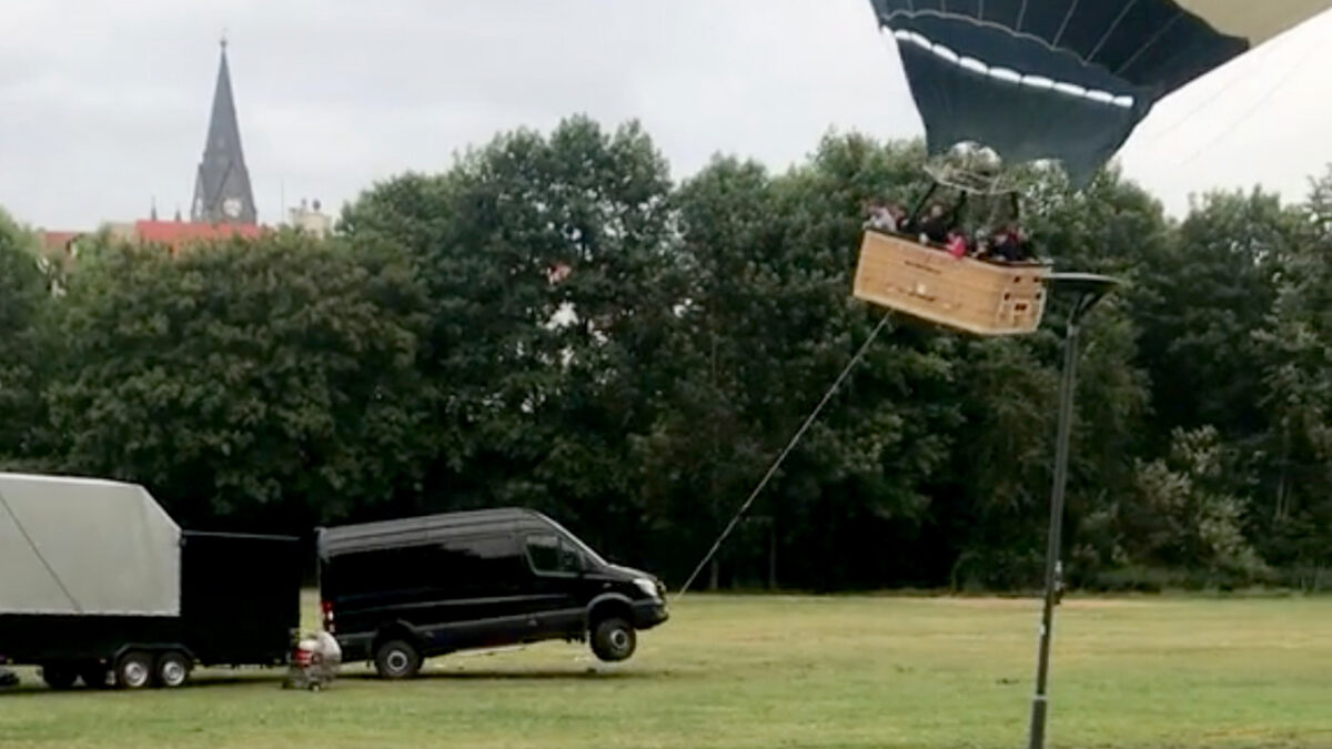 Chef luchtballonnen vergeet even zijn Mercedes los te koppelen