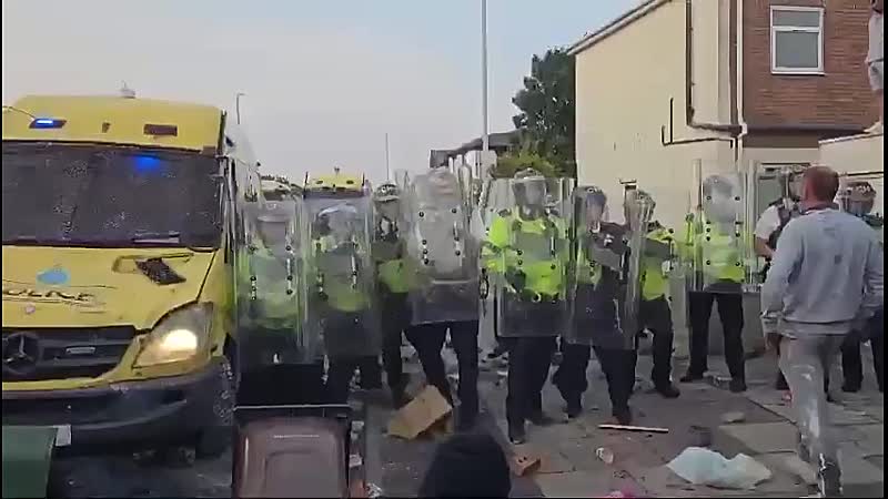 Een groep van zo’n tweehonderd mensen trok daarop naar de stad en botste met de politie bij een moskee. De groep gooide stenen en flessen naar de moskee en agenten. Volgens de politie gaat het om aanhangers van de extreemrechtse, anti-islamitische English Defence League (EDL).