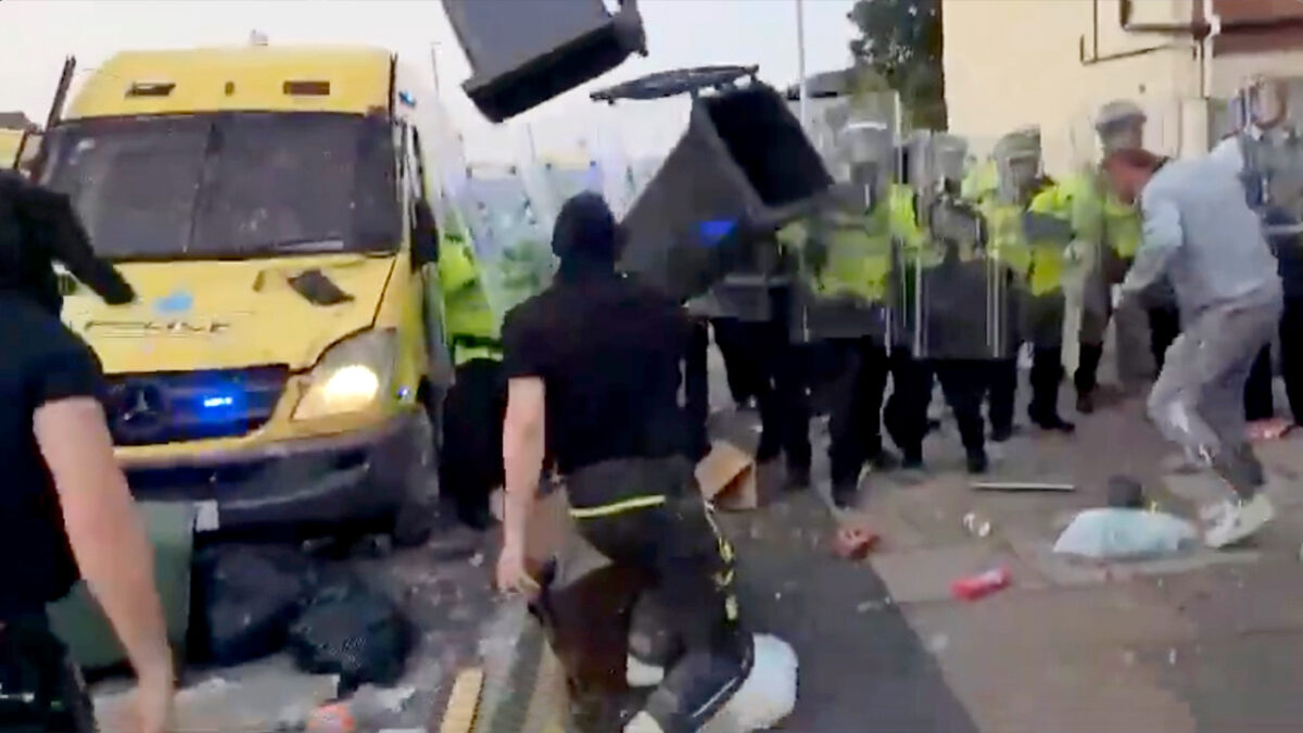 Een groep van zo’n tweehonderd mensen trok daarop naar de stad en botste met de politie bij een moskee. De groep gooide stenen en flessen naar de moskee en agenten. Volgens de politie gaat het om aanhangers van de extreemrechtse, anti-islamitische English Defence League (EDL).