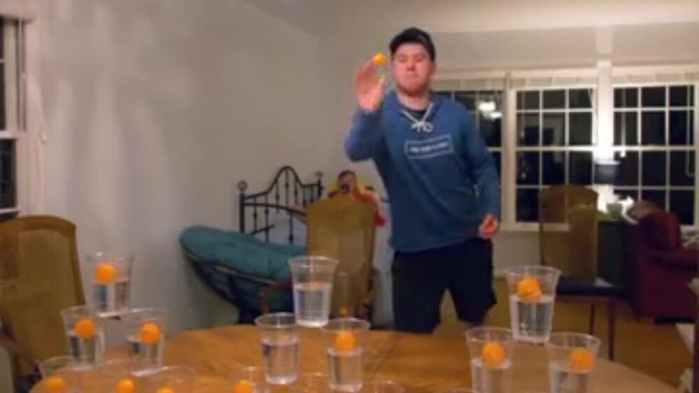 Mocht je binnenkort een potje beerpong willen doen, zorg er dan voor dat deze kerel niet in de buurt is. Gegarandeerd extreme dronkenschap.