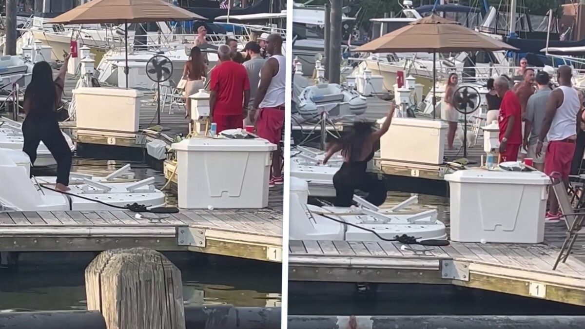 Furieuze vrouw krijgt onverwachte verkoeling in de haven van Jersey