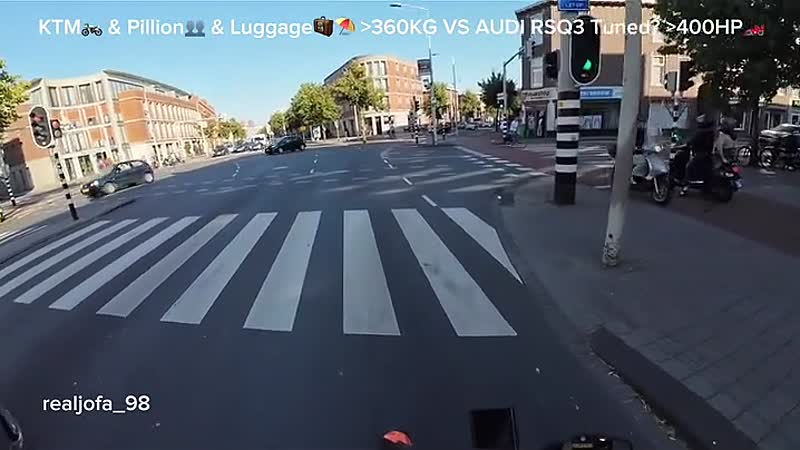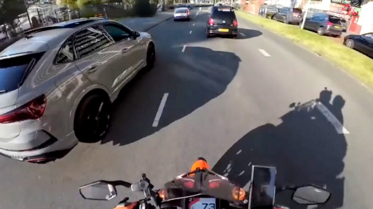 Dat je met de 400 pk van een Audi RSQ3 in staat bent om het tegen een motorrijder op te nemen, is deze verkeershufter op een KTM inmiddels ook achter. Gebroederlijk janken ze met 146 km/u door de bebouwde kom van Den Haag om te kijken wie de grootste idioot is.