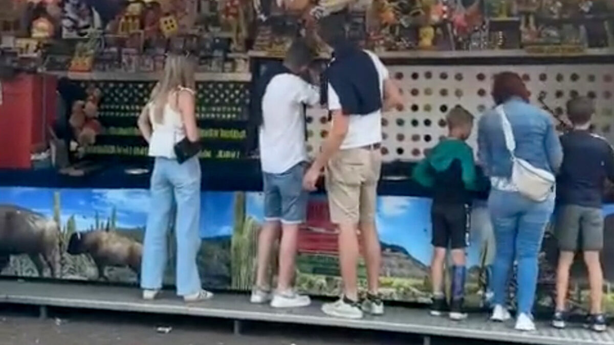 Eigenaar schiettent deelt harde klap uit aan bezoeker die met luchtbuks op knuffels schiet Random