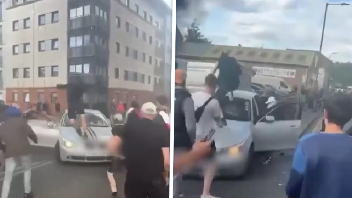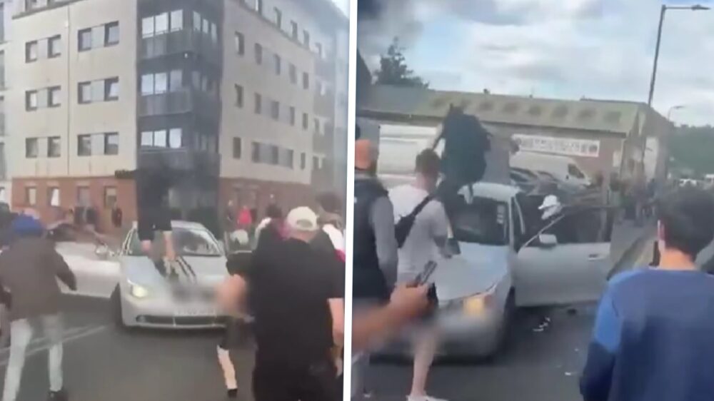 Op het internet gaan bizarre beelden rond van de rellen. Zo zagen we eerder hoe een (tegen)demonstrant relschopper een zwaard (!) mee de straat op nam. Nu circuleren er ook beelden van een onmenselijke aanval op een stel Aziatische inzittenden van een BMW in Hull. Het voertuig werd omsingeld door een woedende meute, die op de auto beukte en de passagiers belaagde. Op beelden is te zien hoe één inzittende wegrent, terwijl hij wordt achtervolgd door een relschopper.
