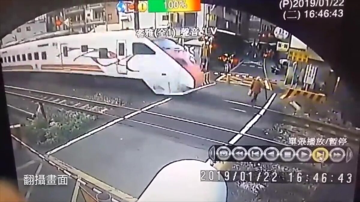 Taiwanees omaatje weet ternauwernood een aanstormende trein te ontwijken