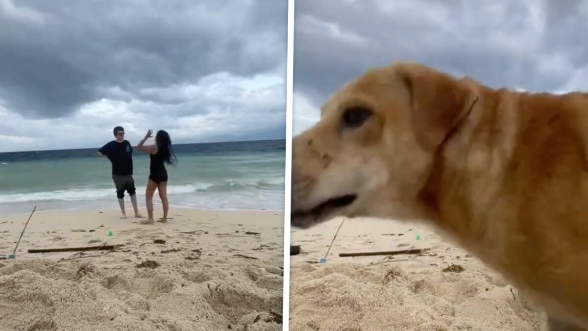 Hond met hoge nood besluit romantische vakantievideo te verpesten