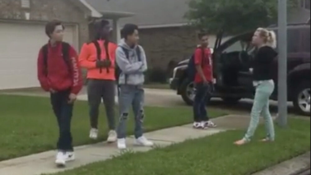 Boze moeder gaat full retard op een groepje schooljongens Gekkies